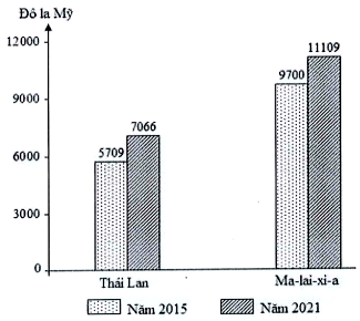 Cho biểu đồ: GDP/NGƯỜI CỦA THÁI LAN VÀ MA-LAI-XI-A NĂM 2015 VÀ NĂM 2021 (Số liệu theo Niên giám