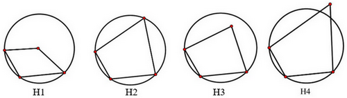 Trong các hình dưới đây, hình nào vẽ một tứ giác nội tiếp một đường tròn.?