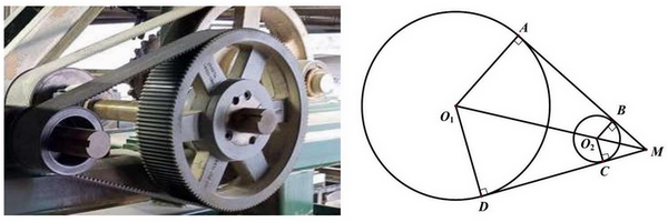 Trong các hệ thống máy, một dây cuaroa bao quanh 2 bánh quay là hai đường tròn có tâm \({O_1}\) bán
