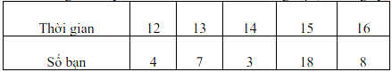 Bảng sau cho biết thời gian chạy cự li 100m của các bạn trong lớp (đơn vị giây)
