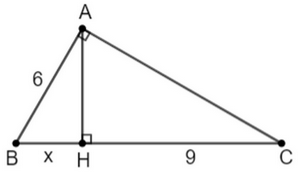 Cho tam giác \(ABC\) vuông tại \(A\), đường cao \(AH,\) biết\(\,AB = 6cm,\,\,\,HC = 9cm.\) Độ dài cạnh