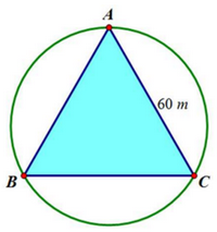 Một khu vườn có dạng hình tam giác đều \(ABC\) cạnh 60 m (như hình vẽ). Người ta đặt một