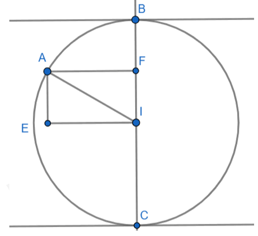 Gọi \(\left( S \right)\) là mặt cầu thay đổi, tiếp xúc với hai mặt phẳng đã cho và đi qua điểm \(A{\rm{ }}\left( {1;{\rm{ }}2;{\rm{ }}1} \right).\) Biết rằng khi \(\left( S \right)\) di chuyển, tâm của nó luôn nằm trên một đường tròn. Bán kính của đường tròn này bằng