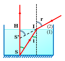 Công thức lưỡng chất phẳng: \(\dfrac{{S'H}}{{SH}} = \dfrac{{{n_2}}}{{{n_1}}}\)