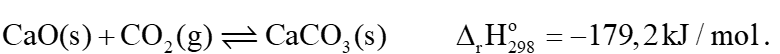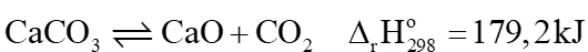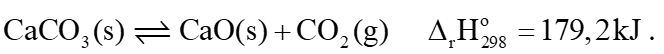 Phương trình nhiệt hóa học phản ứng nhiệt phân đá vôi ở điều kiện chuẩn là