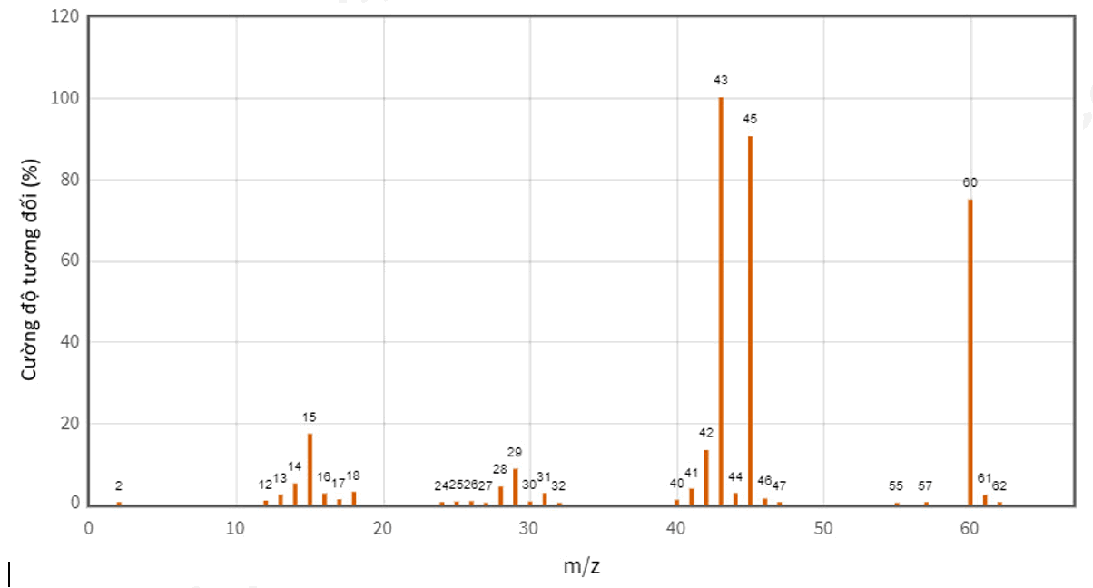 - Thu thập kết quả của phép đo khối lượng của hợp chất X thông qua kết quả phép đo phổ khối lượng (MS):