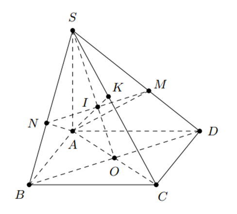 Cho hình chóp S.ABCD có đáy ABCD là hình bình hành. Gọi \(M\) là điểm thuộc cạnh SD sao cho \(SM = \dfrac{2}{3}SD\). Mặt phẳng chứa AM và song song với BD cắt cạnh SC tại \(K\). Tính tỷ số \(\dfrac{{SK}}{{SC}}\).