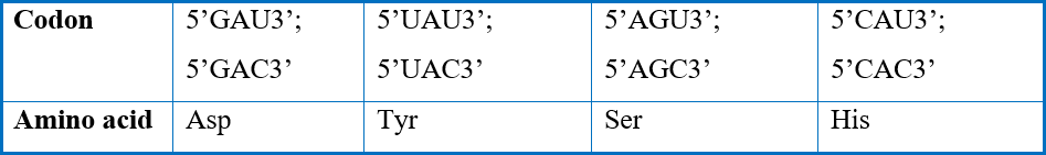 Cho biết các codon mã hóa một số loại amino acid như sau: