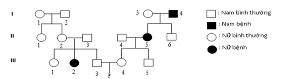 Cho sơ đồ phả hệ sau: Sơ đồ phả hệ trên mô tả sự di truyền một bệnh