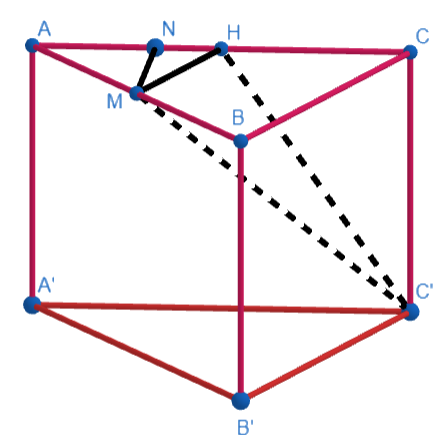 Cho hình lăng trụ đều \(ABC.A'B'C'\) có độ dài tất cả các cạnh bằng \(a.\) Gọi \(M\) là trung