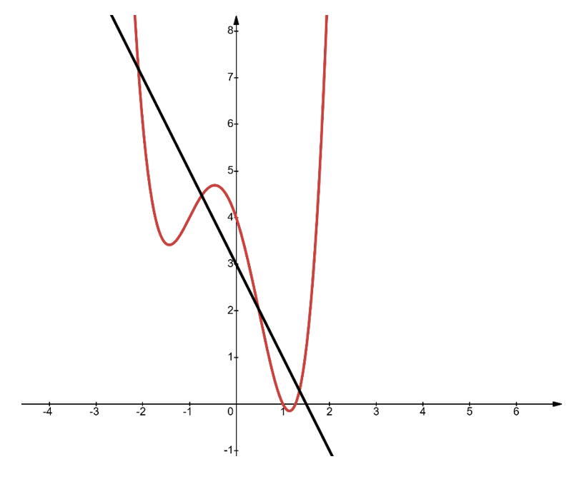 Cho một hàm số bậc bốn và một hàm số bậc nhất có đồ thị như hình vẽ sau: