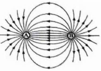 Hình bên mô tả các đường sức điện trường do hai điện tích điểm A và B (mang điện tích)