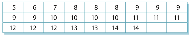Chuyển mẫu số liệu đã cho về mẫu số liệu ghép nhóm với độ dài các nhóm ghép bằng \(2\) và nhóm đầu tiên là \(\left[ {5;{\rm{ }}7} \right).\) Số giờ trực trung vị gần nhất với kết quả nào dưới đây?