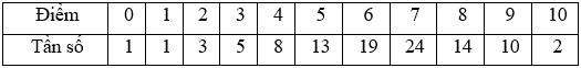 Để khảo sát kết quả kiểm tra cuối học kì I môn Toán của trường A, người điều tra chọn một mẫu gồm 100 học sinh tham gia kì kiểm tra đó. Điểm môn Toán (thang điểm 10) của các học sinh này được cho ở bảng phân bố tần số sau đây: