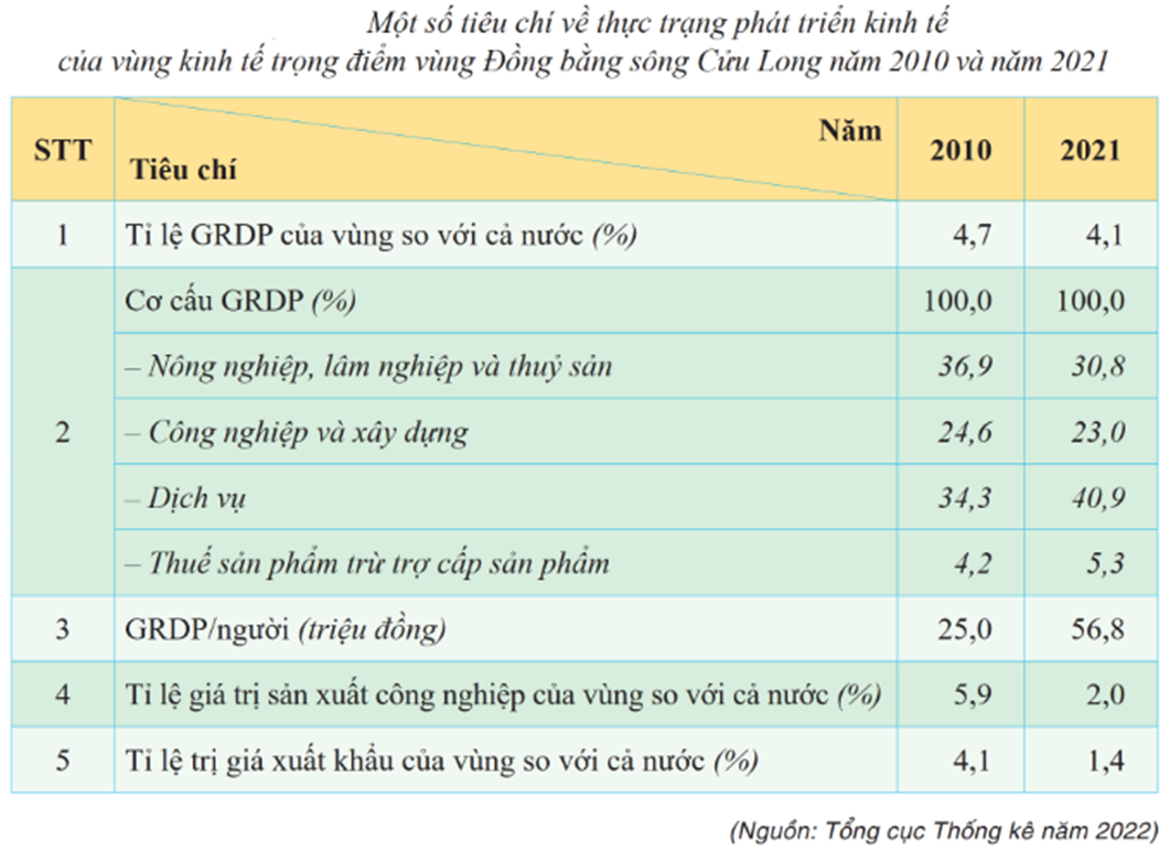 Dựa vào bảng số liệu và đặc điểm vùng kinh tế trọng điểm vùng Đồng bằng sông Cửu Long.