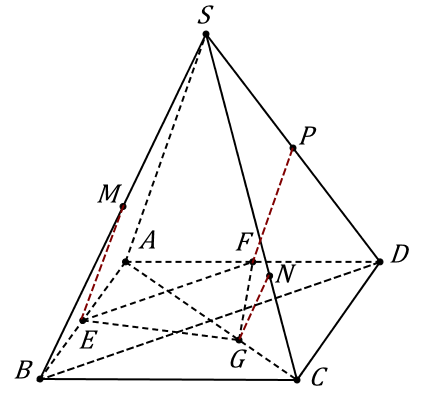 Cho hình chóp S.ABCD có đáy là hình vuông cạnh bằng 6. Gọi \(M\)