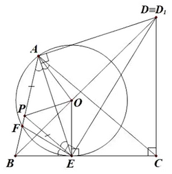 Cho tam giác nhọn \({\rm{ABC}}\,\,({\rm{AB}} < {\rm{AC}})\) có AE là đường phân giác (E thuộc cạnh BC). Trên đường thẳng đi qua A và vuông góc với AE lấy điểm D sao cho góc BCD bằng \({90^0}\). Trên cạnh AB lấy điểm F sao cho góc DEF bằng \({90^0}\).