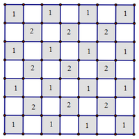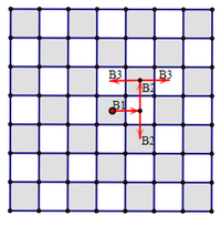 Cho bảng vuông \(7 \times 7\) gồm 49 ô vuông đơn vị như hình vẽ. Có 37 con robot được đặt vào tầm của các ô vuông đơn vị sao cho không có 2 con robot cùng nằm trong một ô. Các con robot được lập trình để di chuyển đồng loạt, với cùng tốc độ theo nguyên tắc như sau: Ban đầu, mỗi con đều di chuyển sang tâm của một ô vuông đơn vị bất kỳ chung cạnh với ô vuông nó đang đứng. Sau đó, mỗi khi chạm vào tâm của ô vuông đến, nó sẽ quay một góc \({90^ \circ }\) và di chuyển tiếp theo hướng đó sang tâm của ô tiếp theo và cứ tiếp tục di chuyển như thế (một ví dụ về cách di chuyển của một con robot như hình vẽ). Chứng minh rằng dù ban đầu có đặt các con robot như thể nào thì vẫn luôn có một thời điểm mà có hai con robot ở chung một ô vuông.