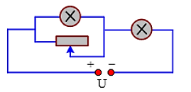Hai bóng đèn \({D_1}\) ghi 6 V – 3 W và \({D_2}\) ghi 6 V – 4,5 W được mắc vào mạch điện như hình vẽ. Nguồn điện có hiệu điện thế U không thay đổi.