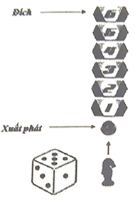 Trong một trò chơi, con ngựa của bạn Toàn đang đứng ở vị trí xuất phát (như hình vẽ). Luật chơi như sau: Để di chuyển con ngựa, bạn Toàn cần gieo một con xúc xắc có sáu mặt cân đối, đồng chất. Ở mỗi lượt chơi, bạn có tối đa ba lần gieo. Ở lần gieo thứ nhất, con ngựa di chuyển đến ô có số thứ tự bằng số tương ứng với số chấm gieo được của con xúc xắc. Từ những lần gieo sau, nếu tổng của số tương ứng với số chấm gieo được của con xúc xắc và số tương ứng ghi ở ô con ngựa đang đứng lớn hơn 6 thì con ngựa sẽ đứng yên, còn nếu tổng này nhỏ hơn hoặc bằng 6 thì con ngựa được di chuyển số ô bằng số chấm gieo được. Con ngựa này gọi là về đích nếu nó đến được ô số 6.