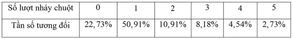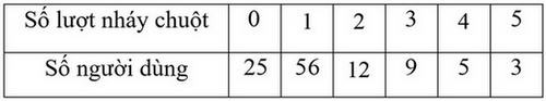 1) Bảng bên thống kê số lượt nhấp chuột vào quảng cáo ở một trang web vào tháng 12/2022. Lập bảng tần số tương đối cho mẫu số liệu này.