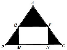 Cho một tấm nhôm có hình tam giác đều có cạnh bằng \(100\,cm\). Người ta cắt ở ba góc của tấm nhôm đó ba tam giác như hình vẽ dưới đây để được hình chữ nhật\(MNPQ\). Tìm độ dài \(MB\)để hình chữ nhật \(MNPQ\) có diện tích lớn nhất.