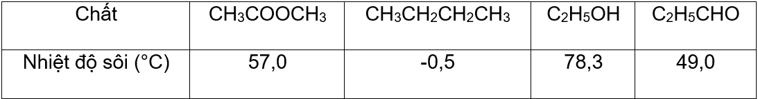 Cho nhiệt độ sôi của các chất trong bảng sau: