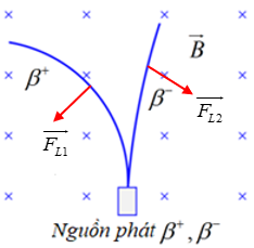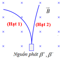 Vết của các hạt \({\beta ^ - }\) và \({\beta ^ + }\) phát ra từ nguồn N chuyển động
