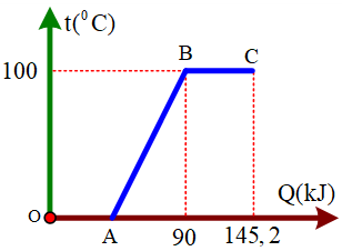 | c) Trong đoạn BC trên đồ thị, khối nước nhận nhiệt lượng để thực hiện quá trình hóa hơi. | ||