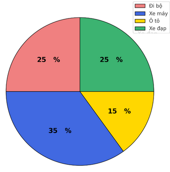 - Xác định số phần trăm thể hiện số học sinh tham gia các phương tiện để đến trường
