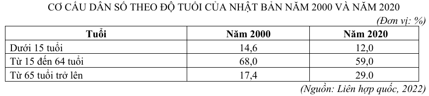 Cho bảng số liệu:a) Vẽ biểu đồ tròn thể hiện cơ cấu dân số theo độ tuổi của Nhật Bản