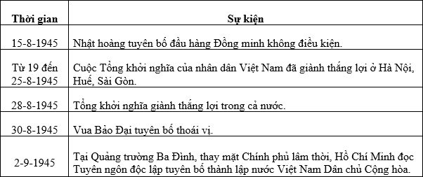 Cho bảng dữ kiện về Tổng khởi nghĩa tháng Tám năm 1945 ở Việt