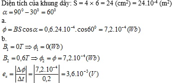 b . Trong khoảng thời gian 0,2 s cho độ lớn của từ trường tăng đều từ 0 - 0,6 T. Xác định độ lớn của suất điện động trong khung.