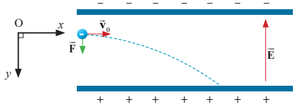 Sử dụng lí thuyết về điện tích chuyển động với vận tốc ban đầu vuông góc với vecto cường độ điện trường.