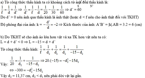 b/ Giữ cố định thấu kính, hỏi phải dịch chuyển vật như thế nào để ảnh lúc này cùng chiều với vật và cách vật 15 cm? (0,75đ)