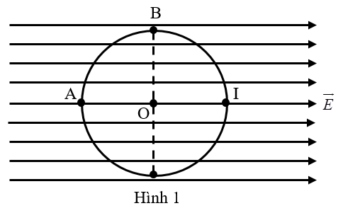 Một điện tích q > 0 đặt trong điện trường đều có chiều như hình 1. Gọi \({A_{BA}},\,\,{A_{BO}},\,\,{A_{BI}},\,\,{A_{IA}}\) lần lượt là công lực điện khi điện tích q di chuyển trên các quãng đường tương ứng BA, BO, BI và IA. Thứ tự đúng là: