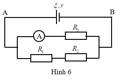 Cho mạch điện có sơ đồ như hình 6. Nguồn điện suất điện động \(\xi =