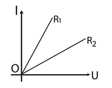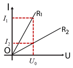 Cho đường đặc trưng vôn – ampe của hai vật dẫn có điện trở \({R_1},{R_2}\) như hình vẽ. Chọn đáp án đúng?