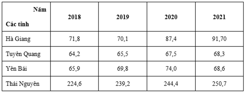Cho bảng số liệu sau: SẢN LƯỢNG CHÈ BÚP TƯƠI PHÂN THEO ĐỊA PHƯƠNG GIAI ĐOẠN