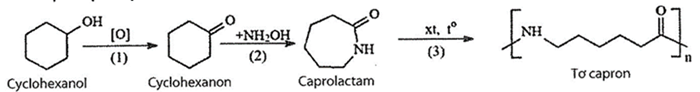 Tơ capron là polymer có tính dai, bền, mềm óng mượt, ít thấm nước, mau khô. Bên cạnh ứng dụng trong ngành may mặc, tơ capron còn được sử dụng làm dây cáp, đan lưới, chế tạo các chi tiết máy. Một quy trình sản xuất tơ capron từ cyclohexanol được thực hiện theo sơ đồ sau:
