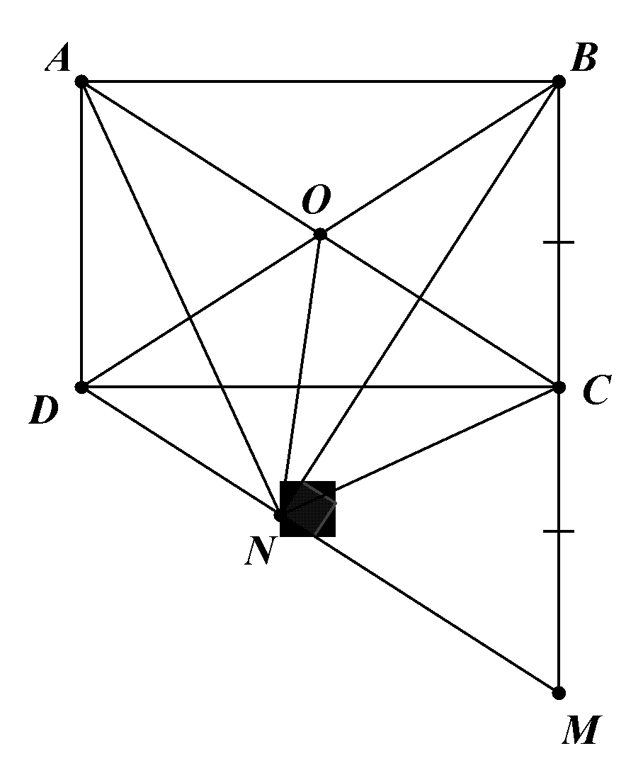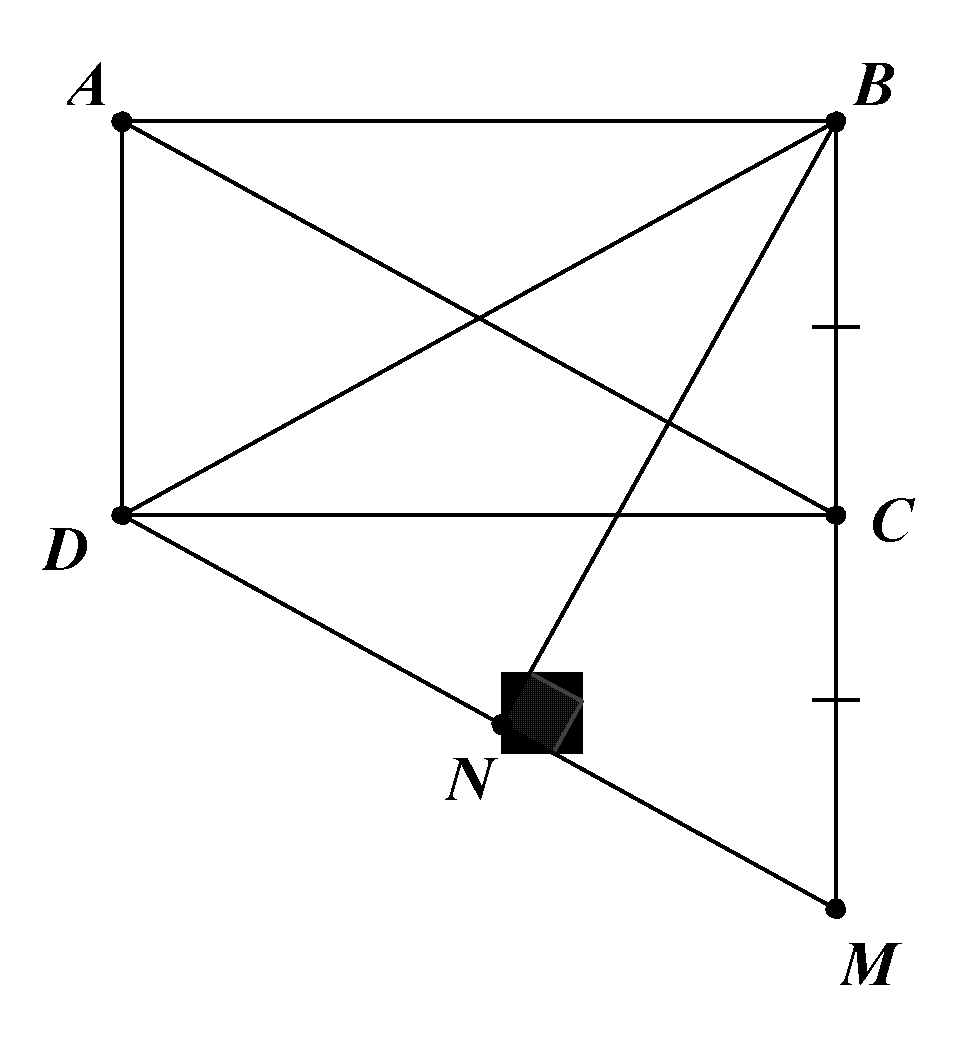 Trong mặt phẳng tọa độ Oxy, cho hình chữ nhật \(ABCD\). Gọi \(M\) là điểm đối xứng của \(B\) qua \(C\). Gọi \(N\) là hình chiếu vuông góc của \(B\) trên \(MD\).