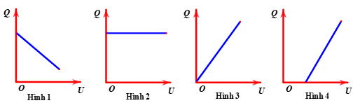 Đồ thị nào trên hình biểu diễn sự phụ thuộc của điện tích Q của một tụ điện vào hiệu điện thế giữa hai bản của nó?