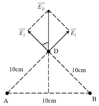 | d) Tam giác ABD đều, cường độ điện trường tại D bằng \(8,{25.10^6}\,\,V/m\). |