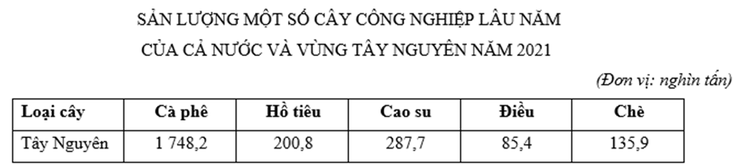 Căn cứ bảng số liệu, cho biết sự chênh lệch tỉ trọng cây công nghiệp lâu năm cao nhất và thấp nhất trong tổng diện tích cây công nghiệp lâu năm ở Tây Nguyên là bao nhiêu %? (làm tròn kết quả đến số thập phân thứ nhất).