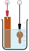 Quá trình điện phân để mạ đồng (Cu) lên một chiếc chìa khoá