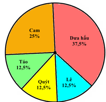 Biểu đồ dưới đây cho biết tỉ số phần trăm về các loại quả mà học sinh lớp 4C của một