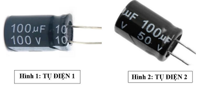 Tụ điện là thiết bị được sử dụng nhiều trong bảng mạch điện tử của các thiết bị điện, điện tử như điện thoại, laptop, tủ lạnh,... Tụ điện có khả năng tích điện và phóng điện. Cho hai tụ điện với các thông số ghi trên nhãn như hình bên