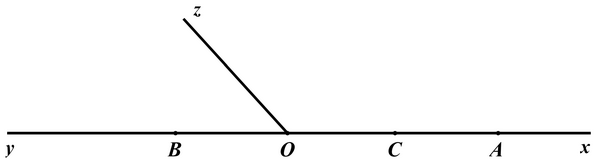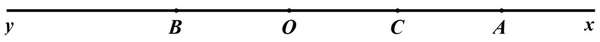 Cho hai tia \(Ox,Oy\) đối nhau. Trên tia \(Ox\) lấy điểm A sao cho \(OA = 4\;cm\). Trên tia \(Oy\) lấy điểm B sao cho \(OB = 2\;cm\). Gọi C là trung điểm của đoạn thẳng OA.