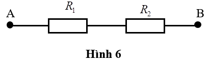 Đặt hiệu điện thế 40 V vào hai đầu đoạn mạch AB gồm điện trở \({R_1}\) nối tiếp với điện trở \({R_2}\) như Hình 6. Các giá trị điện trở là \({R_1} = 5\,\,\Omega \) và \({R_2} = 15\,\,\Omega \). Biết rằng điện trở của dây nối không đáng kể. Hiệu điện thế hai đầu điện trở \({R_1}\) là