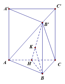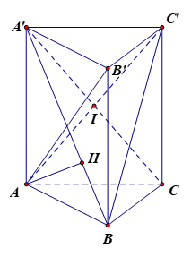 Biết thể tích khối lăng trụ \(ABC.A'B'C'\) là \({a^3}\), tính khoảng cách từ điểm B đến mặt phẳng \(\left( {AB'C} \right)\)
